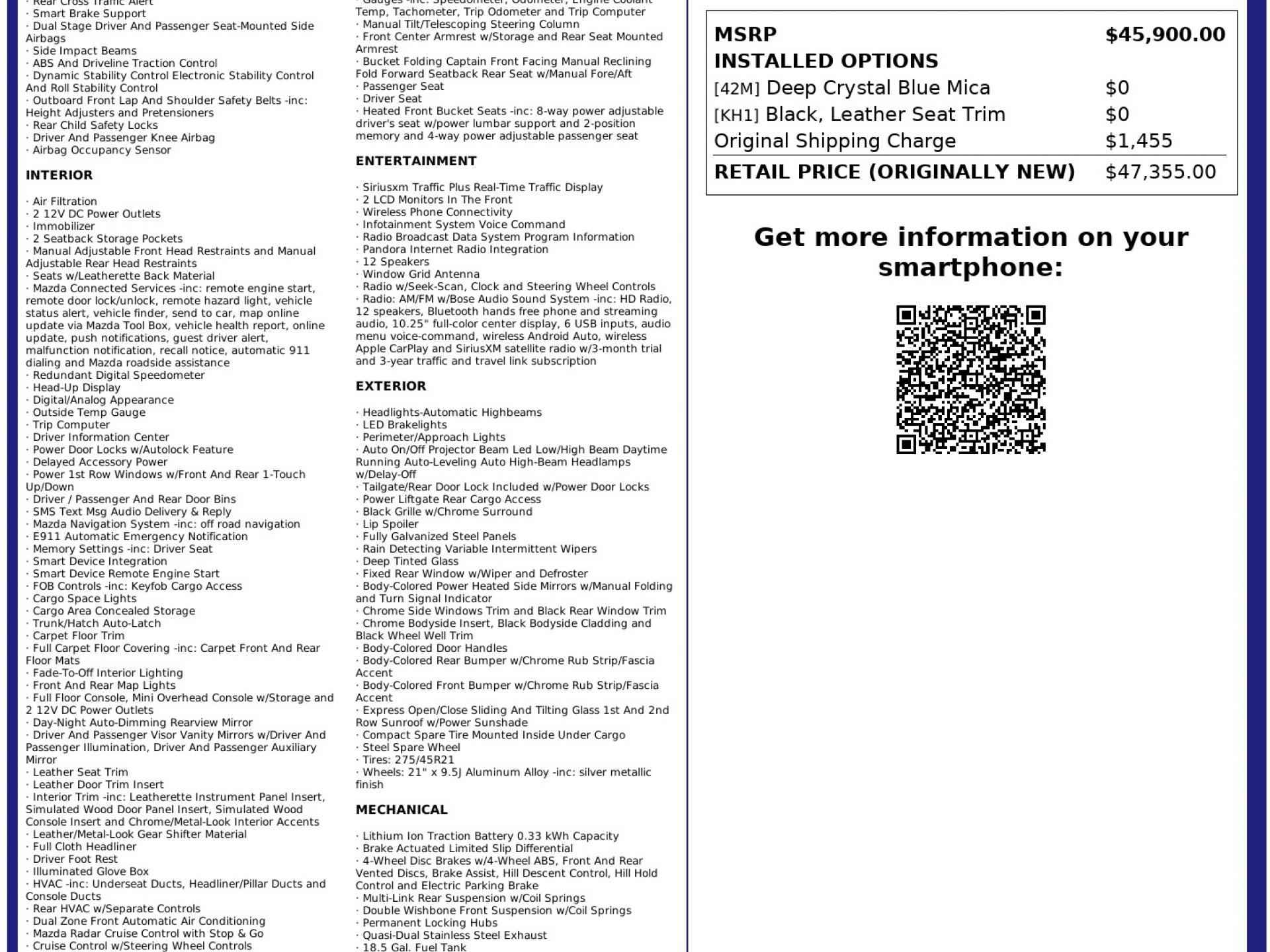 This pre-owned 2024 MAZDA CX-90 HYBRID TURBO PREMIUM offers a modern design, comfortable interior, and advanced features. A great option for buyers looking for a well-equipped, late-model vehicle.